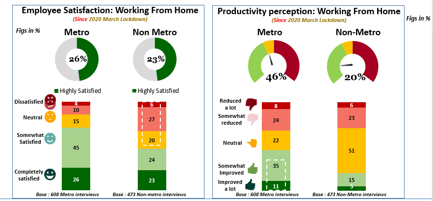 - Only 4% metro employees and 6% respondents in smaller locations were dissatisfied with work from home.
