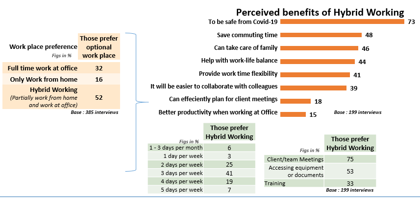- Among those who prefer hybrid working, 41% prefer working from office 3 days a week, while 25% chose 2 days of office work.